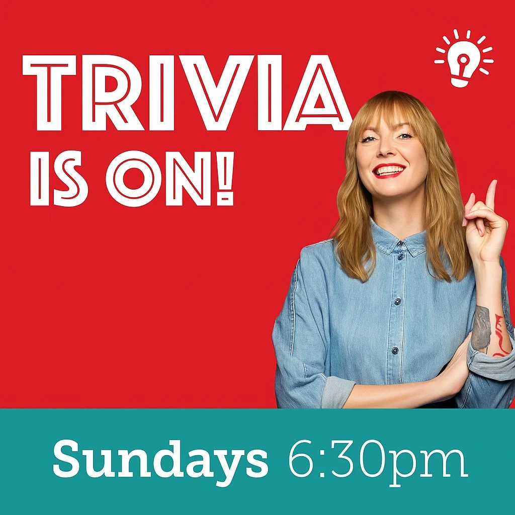 Join us every Sunday at 6:30pm for a fun, relaxed trivia night full of laughs, friendly competition and great vibes.
